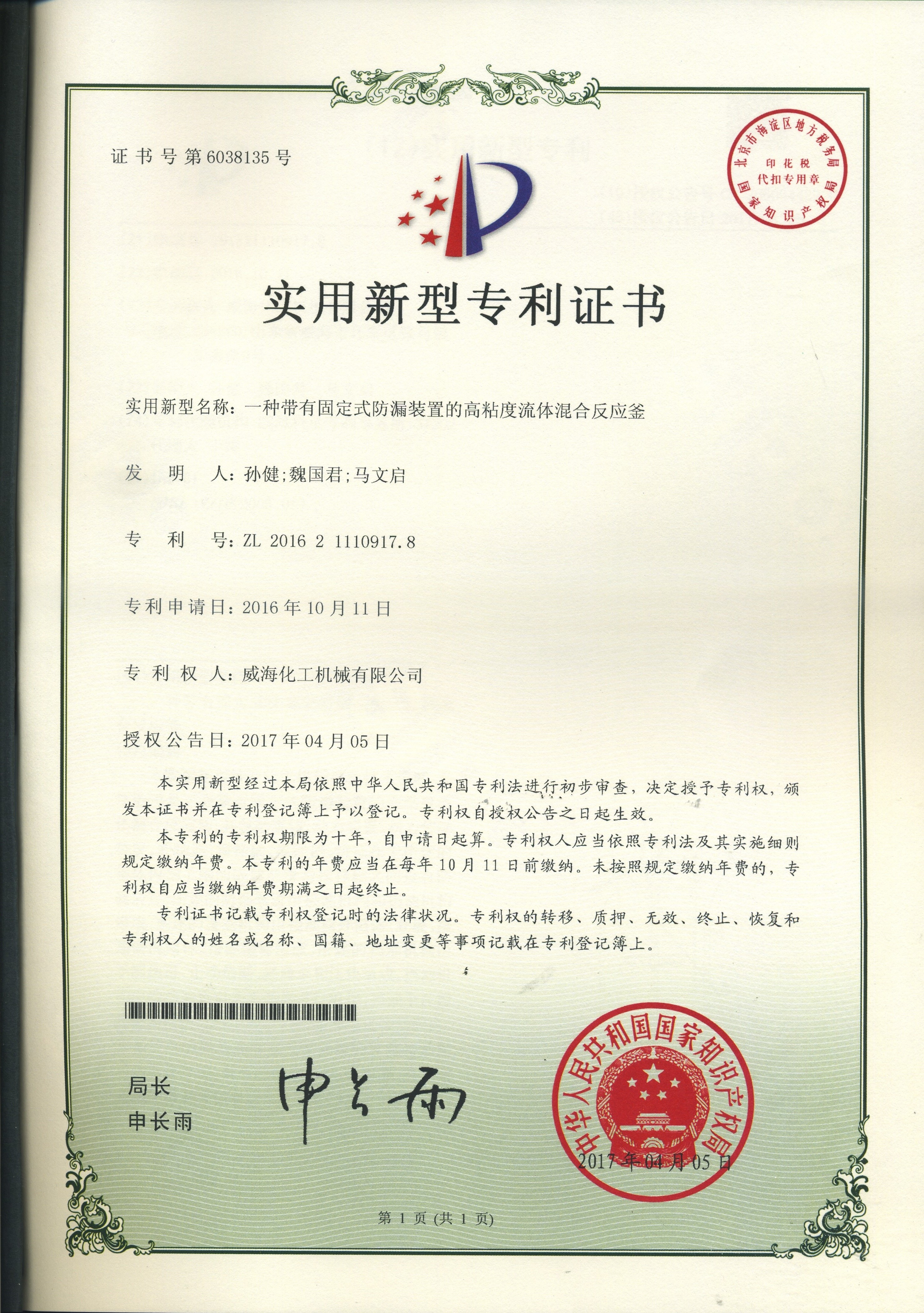 專利證書